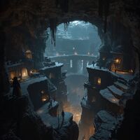 Many #Whispering Labyrinths lead to the Uncercroft and away from it, but they can be unreliable and Borin or the Undercroft can shut them down in case of danger. Then the only entrance is The Gate, a massive set of bedrock doors set straight into a sheer cliff side on the fringes of Darlington.